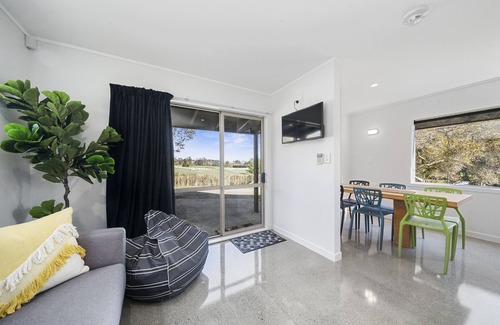 The Bunkhouse rests on an immaculately kept lifestyle block and is perfectly positioned to enjoy rural views in the afternoon sunshine. Expansive lawns mean you can stage your very own game of backyard cricket, finishing up the match in style with a few sausages on the BBQ and well deserved cold bevvy!