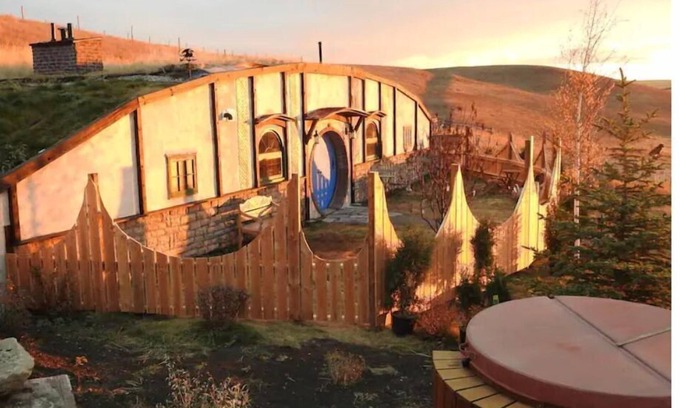 The Burrow is a cozy hill-side cottage. This unique earth-bermed cottage is built right into the hillside - with round doors and windows. Private fenced yard with a cedar hot tub, BBQ, firepit, and seating. Inside the cottage is spacious but cozy - 650 sq ft of living space. There are 5 rooms,: a long entrance hallway, a bedroom, a sitting room (with a fireplace), a kitchen, and a bathroom. There are 2 queen-sized beds and a single roll-in bed. Located in a beautiful valley in central Alberta.