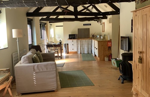 The Byre adjoins the owner’s property but is completely self-contained. The main property is a 17th century threshing barn with Georgian brick and stone additions. The cottage comprises a large open-plan room with a sleeping area, a sitting area, a dining area and a kitchen area together with a separate shower room. With an abundance of oak beams and comfy furniture the cottage makes for a romantic and cosy retreat.