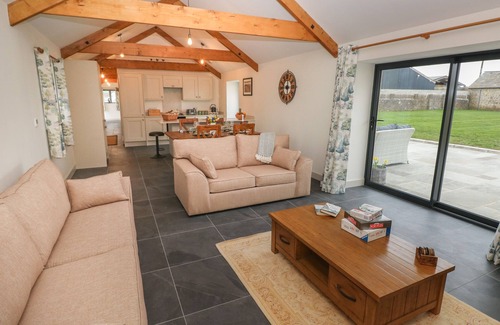 Please note: Property can only accept a Friday check in. The living areas in this single-storey barn conversion consists of an open-plan kitchen, dining area and sitting area with electric oven, gas hob, microwave, fridge/freezer, dishwasher, wine chiller, TV and woodburning stove, and a communal laundry room with washing machine. There are two super-king-size bedrooms (zip/link), serviced by a bathroom. Outside there is an enclosed rear garden with patio, lawn, furniture, and hot tub, and off-road parking for two cars. Two well-behaved dogs welcomed, but sorry, no smoking. WiFi, fuel, power, bed linen, dressing gowns and towels are all included in the price. Travel cot anf highchair available. You'll find a shop and a pub in 1.7 miles. The Byre is a charming dwelling for a countryside escape to the Vale of Glamorgan. Note: Two large dog kennels available for use. Note: Access for walking/dog walks to the heritage coastal path via fields on the farm. Note: The property is situated on a working farm.