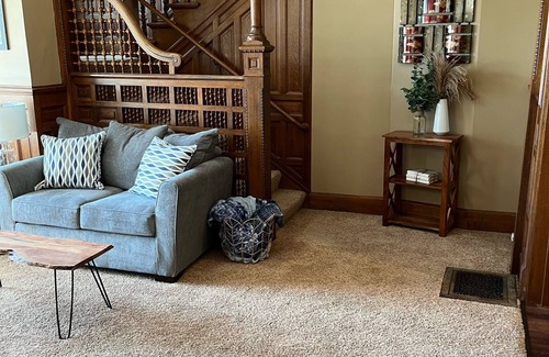 The whole group will be comfortable in this spacious and unique space. This beautiful historic apartment is close to downtown, hospitals and UWEC which has been fully updated with original woodwork. This unit has full access to the large wrap around front porch. The city bus stop is directly in front of the property, and it is walking distance to several city parks and bike paths.