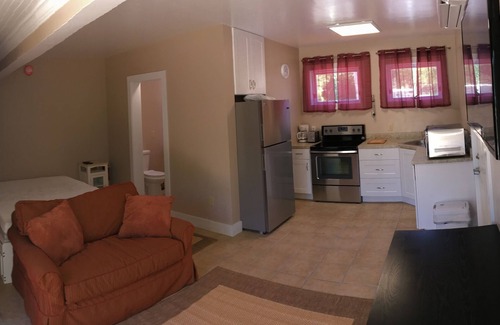 Studio Apartment with private deck that provides direct access to Lake Dunmore and views of Mt. Moosalamoo. Perfect for 2 adults. Full kitchen, bathroom with Large shower, Private Deck with gas grill, LED SmartTV and WiFi. Beach area and Marina with boat rentals, Camp Store and Paddler's Pub on property. You also have access to our Hiking Trails on Sunset Hill, with great views of Lake Dunmore & Moosalamoo to the East and the ADK's to the West. Just 10 miles North to Middlebury and 9 miles South to Brandon.