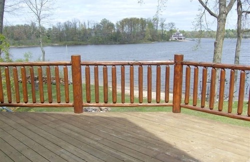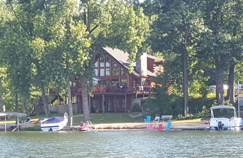 Beautiful 5 bedroom log house with wonderful lake views. Perfect for extended family vacations! Private pier with firm sand bottom swimming. Firepit by the water. Great fishing lake. Screened in porch and large deck overlooking water. Stone fireplace inside. Close to South Haven, golfing & more. Great Bear Lake is private 160 acre lake with no public access. Must see to believe!