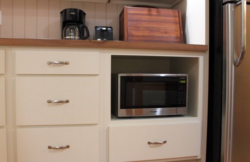 The standard kitchen includes stainless steel appliances (including a full-sized refrigerator with freezer and oven with stove top), a traditional drip coffee maker, a toaster oven, toaster, microwave, blender, crockpot and all the pots, pans, and utensils you'll need. The living room has a flat screen HDTV with streaming services such as Netflix, and a wood stove for colder nights.
