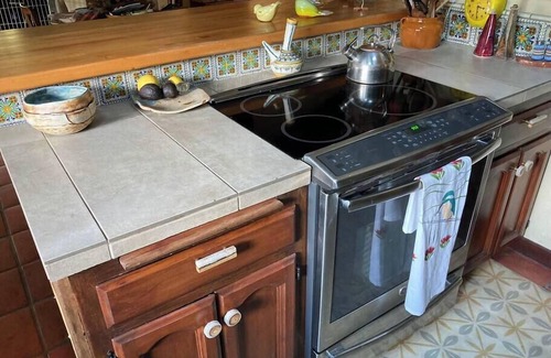 Fully stocked kitchen - cookware, dishware, silverware, linens, soaps. Coffee Maker, Espresso Machine, Vitamix, Cuisnart chop machine, Cuisinart Slow Cooker, Toaster Oven, Microwave. linens, towels, supplies, utilities, wifi, gardener all included.