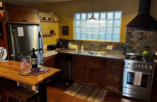 Inspired by territorial Arizona architecture, The Cactus Pad is a brand new, custom-designed, private home located in the historic district of Old Town Cottonwood, The Heart of Arizona's Wine Country. Only one short block off Main Street, enjoy access to entertainment without the need to drive a car. In less than a minute's walk, experience Main Street shopping, wine tasting, gourmet food, live music and more. Stay and explore historic Old Town, enjoy the Verde River, and much more.