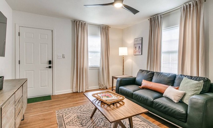 The design pieces have been thoughtfully chosen with the idea of fun and restfulness in mind. The neighborhood this cottage is found in pleases the exciting campus experience, while the inside of this home proves to be a comforting place to eat, sleep, chat and chill. Soft and simple tones, with added warm touches of color really do well to create an inviting atmosphere. The Campus Cottage is meant to be a part of your experience, not just a place to sleep! Spend some time with your friends and family, a cup of coffee in the morning, or a drink in the evening on the back yard deck, and bask in the free-and-easy lifestyle this home will express.