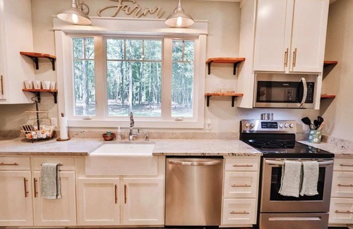The Camellia Cottage offers a family-friendly environment with space for children to relax and play. The rustic hunting and farmhouse-themed decor create a cozy atmosphere. Please note that no parties or events are permitted, and for the comfort of all guests, no pets and no smoking are allowed on the property.