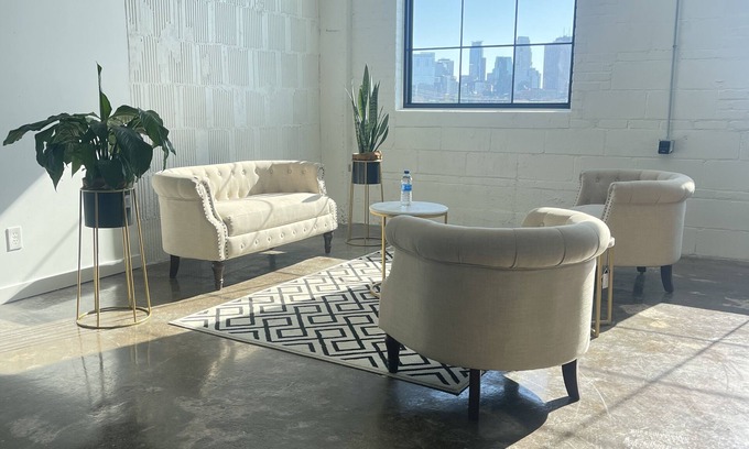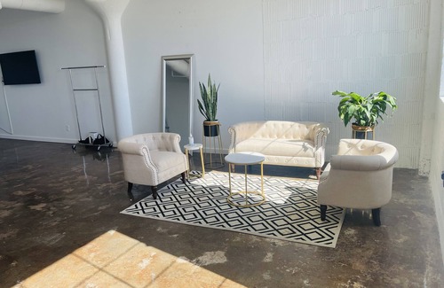 HOURLY EVENT/PHOTO RENTAL (BEDROOM NOT INCLUDED—NO OVERNIGHT STAYS). This space features an open loft feel yet industrial vibe with concrete floors, exposed 10 ft ceilings, and a ton of beautiful natural light that is provided by two 6 X 5 ft windows facing north with unobstructed views of the city. The space can a accommodate a maximum of 30 people.