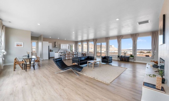 Welcome to The Canyon Dweller, your 2,780 sq. ft home in Page, AZ, encapsulating stunning vistas of grand mesas and Navajo Mountain. Built in 2021, this abode, positioned between Zion National Park and the Grand Canyon, is a mere 16 min drive away from Wahweap Marina, 28 mins from world famous Antelope Slot Canyon, 18 mins to Horseshoe Bend, 18 mins to Glen Canyon Dam, and 20 mins to town!