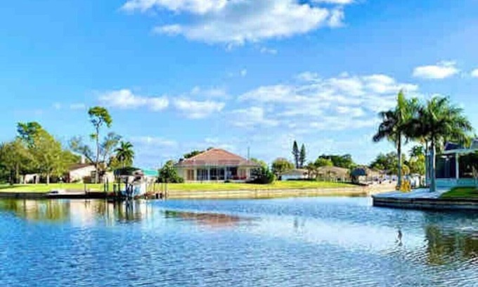 This Beautiful newly renovated apartment is located just blocks from downtown Cape Coral.Less than 10 minutes walk to bars, restaurants and stores.Use the bikes we provide for guests to bike around.Cape Coral beach/yacht club is 5 mins drive.Rent a boat on your vacation and tie up at the dock on the property.10 minutes boat ride to the river.The space is suited for 2 adults and 2 children.Not for 3-4 adults. Fastest Wi-Fi available