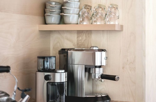 It features a first bedroom on the mezzanine and a second one in the attached pod with an independent bathroom. The fully equipped kitchen is at the heart of the space. The terrace is set back from the chalet, where you'll also find a fire pit and everything you need for outdoor cooking.