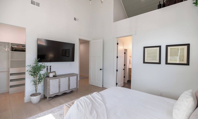 This superb property features 3 queen beds and 3 twin beds. Perfect for your group with amenities: fast WiFi (2gig ISP), dual shower heads in master bathroom, a fitness room, a children's corner, a robust built-in AC/heating, a full laundry room, and a high-end 75" micro LED TV with 5.1 dolby stereo system. Come enjoy this spacious, elegant home!