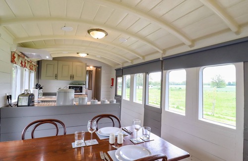 The Carriage at High Barn Heritage is a converted passenger train situated in Greenstead Green near Halstead. Hosting one double bedroom and shower room, this accommodation can sleep up a couple. There is also an open plan living space with kitchen, dining and sitting area. To the outside is a small balcony with seating and off-road parking for one car. The Carriage at High Barn Heritage is a unique escape for a romantic getaway.