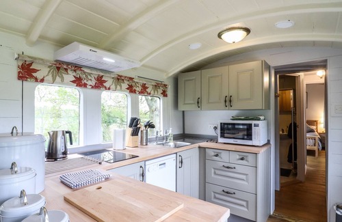 Amenities: Air Conditioning. Electric Air Source Heating. Electric hob, Microwave combination oven, Fridge with ice-box/freezer compartment, Dishwasher, Toaster, Kettle TV with DVD player, A selection of games. Washing Machine, Iron and Ironing Board use provided in the Laundry Room on site. Softened Water. Hairdryer. Fuel and power inc. in rent. Bed linen and towels inc. in rent. Off-road parking for two cars. Balcony with seating. Decked Areas with seating front and back. Charcoal BBQ. Winner of the Best Quirky holiday let 2022. No pets and No smoking. Note: 7 steps up to the property, not suitable for those with limited mobility. Note: No infants or children under 5. Please note: Shared Amenities with The Brake Wagon (1117637). Shops from 2.4 miles, Pubs from 2 miles.