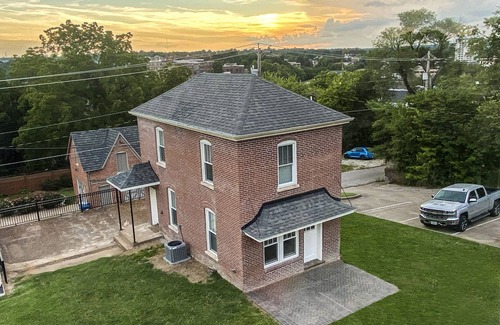 The Lester Parker property, the neoclassical revival home built in 1905, is on the National Register of Historic Places and sits on the corner of historic Capitol Avenue and Lafayette Street. Diagonally across the intersection is the old Missouri State Penitentiary and directly across Lafayette Street is the Missouri State Penitentiary Museum and Penitentiary Tour Ticket Office.