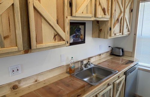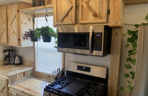 - XL tiny home with two lofted queen beds and full size futon on the main level.