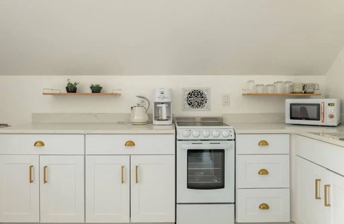 The Carriage Loft is light, airy and bright with an energizing and relaxing feel. Completely remodeled and refurbished in 2021. The Loft is incredibly clean, all kitchen/bath items, linens, beds, sheets and towels are brand new, and great care is taken to ensure proper sanitation and thorough cleaning.