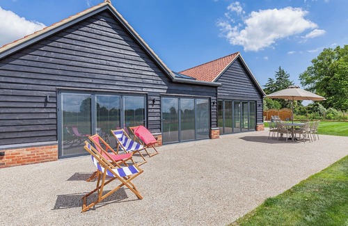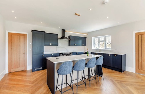 Separate Toilet.. Air source heat pump and underfloor heating, electricity, bed linen, towels and Wi-Fi included. Initial fuel for wood burner and Hot Tub included. Highchair and travel cot and available. Welcome pack. Back garden with garden furniture and barbecue. 1-acre grounds. Wood burning hot tub for 6 (private). Electric car charging point. Private parking for 4 cars. No smoking.. Welcome to The Cart Lodge, a beautiful restored four-bedroom barn style lodge in the countryside of Rochford, a picturesque market town. This exquisite property seamlessly blends modern luxury with rural charm, offering the perfect escape for families or groups of friends seeking comfort and privacy. Each of the four spacious bedrooms comes with its own private ensuite bathroom.