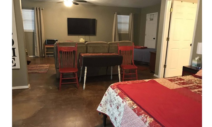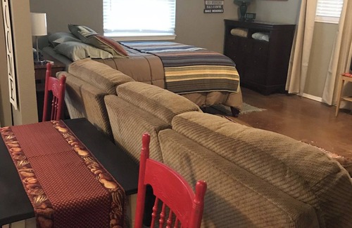 Apartment connected to a larger VRBO with a porch in between. Located on lake Cisco north of Cisco, TX. There is a fridge, coffe maker and microwave. There is no kitchen or laundry. There is a boat dock on the lake.
