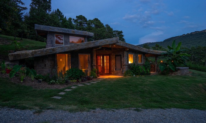This hand-carved stone cottage has a ruins-like exterior and continues the theme as you go inside. Its well decorated cavern interior will wow you with its thoughtful layout and interesting construction technique.
