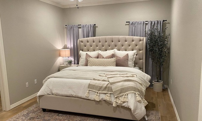 Make yourself at home in this brand new house in a quiet neighborhood in the heart of Chaffee Crossing. Fort Smith retreat. This quaint house offers a king bed, 2 queen beds, and 2 twin beds, perfect for a group getaway. Enjoy the cozy living room with a sofa bed for additional space. Guests can take advantage of amenities like WiFi, AC, and a washing machine. The 2 bathrooms come equipped with a hairdryer for added convenience. We're happy to assist with any questions while you stay at our enjoyable house.