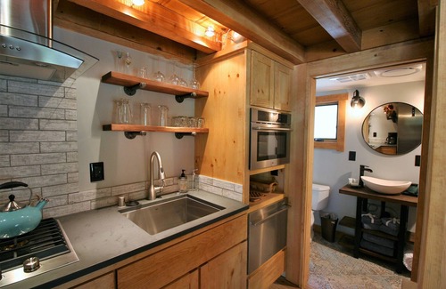 This adorable Bert Anderson cabin has been reborn as The Chalet 300. Authentic pine with all the luxuries of tiny home living, and just a short walk to Sunnyside and Lake Tahoe, this cabin nestled in the woods exudes the ultimate in a mountain lifestyle visit.