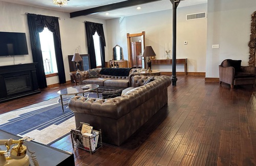The Charleston Suite is an ideal wedding accommodation, offering a spacious 2700 sq ft private upstairs suite that comfortably sleeps 8-10 people. Nestled in the historic town square, this property provides a charming and convenient base for your wedding festivities.
