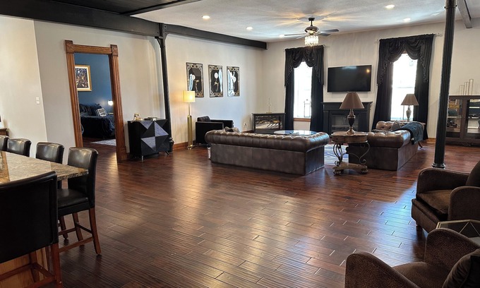 Located in the charming town square of Carrollton, Illinois, The Charleston Suite places you steps away from delightful restaurants, local events, and vibrant nightlife, ensuring everything you need is within reach. Spend time exploring the town with your guests or take advantage of the scenic surroundings to capture stunning wedding photos. With its prime location and capacity to accommodate larger groups, this suite is not just a place to stay, but a destination that enhances your wedding experience.
