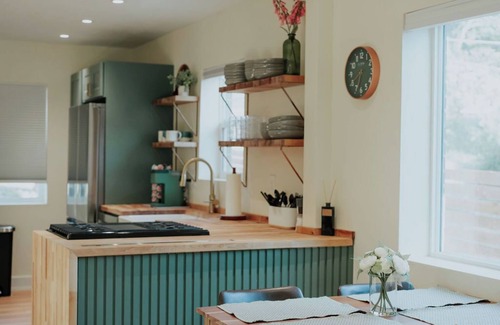 Your home away from home in Salt Lake City with 4 bedrooms awaits you. This charming house features 2 queen beds, 1 full bed, 2 twin beds, and even a crib for the little one. With 3 bathrooms equipped with a soaking bathtub, dual shower head shower, and luxe products and amenities, you'll feel right at home. Evenings outside by the fire pit, grilling up a dinner annd playing corn home will remind you that you’re on vacation. Enjoy amenities like WiFi, heating, AC, a washing machine, and more. The Charlotte House is a perfect home base to experience everything Salt Lake City and our beautiful mountains have to offer.
