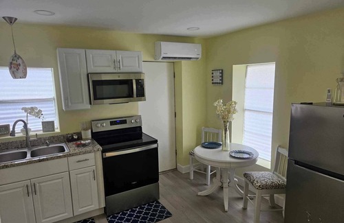 Escape far away to this adorable cottage with a spacious kitchen, full size bathroom and shower, and a large open spacious floor plan with master bedroom/ living room area.