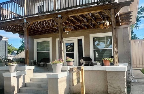 This house is full of Character and Charm! Centrally located within walking distance of Cowley College and minutes from great restaurants and other essentials in Ark City. This cozy home has 4 bedrooms and 1.5 bathrooms. 3 bedrooms have queen beds, the kid's room have twin beds, plus a fun tent, chalkboard, and board games. All bedrooms are upstairs and 2 of the bedrooms walk out onto a beautiful patio. Living room has leather sofa recliners, kitchen is fully equipped, and washer and dryer available in laundry room.