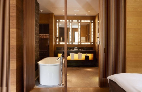 The Chedi Andermatt offers 123 accommodations with fireplaces and minibars (stocked with some free items). Rooms open to balconies. Accommodations offer separate sitting areas. Pillowtop beds feature down comforters and premium bedding. A pillow menu is available. Flat-screen televisions come with pay movies. Coffee/tea makers and minibars are provided. Bathrooms include separate bathtubs and showers with deep soaking bathtubs and rainfall showerheads. Bathrooms are also outfitted with bathrobes, slippers, and designer toiletries.