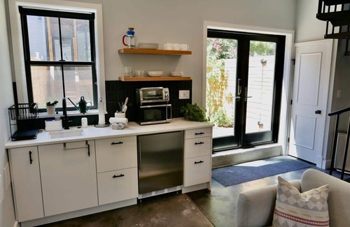 This beautifully designed 2 story carriage house apartment is the essence of tiny home perfection! It is completely stand alone and fully equipped for a memorable stay. A parking pass is available and must be requested in advance, simply sign up, request, and print (BEFORE you travel)!