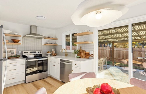 Welcome to The Chic Retreat in Cedar Mill! Step into this stylishly renovated 2-bedroom, 1-bath retreat with all-new furnishings and appliances. Relax in the cozy living area with zoned AC and heat, enjoy meals in the quaint dining nook, and retreat to comfortable queen-size beds at night. Walk across the street for dining, coffee, or groceries. Outside, a spacious fenced patio with gas bbq grill for outdoor dining and relaxation. Experience comfort, convenience, and style at The Chic Retreat!
