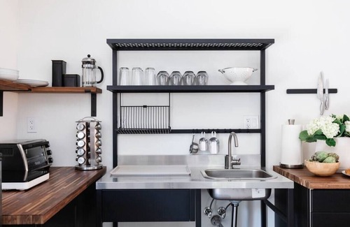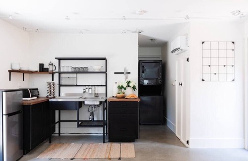 Stay in style at this bright and Boho studio, located in the heart of Chico! Modern minimalism meets iconic Southwest-inspo in this brand new build to create a space that is ideal for a weekend getaway. Finished in the spring of 2021, the Casita de Chico is a spacious ground level studio that thoughtfully blends industrial vibes with a relaxing atmosphere to create a space you’ll love to stay in!