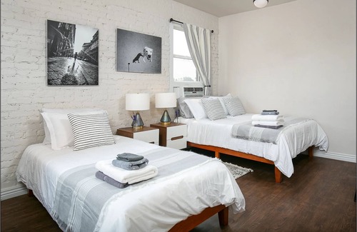 This clean, comfortable LA studio is ideal for couples, small families, or a few friends looking for a well-located place to rest and recharge. With two double beds, it comfortably sleeps up to three guests, and you'll find everything you need for a laid-back stay—WiFi, air conditioning, a mini fridge and microwave, plus fresh linens and a coffee maker to start your day. Self check-in with a keypad makes arrival a breeze, and free street parking adds to the convenience. Whether you're in town for a weekend getaway or a longer stay, you'll love the simple comforts, cozy feel, and easy access to everything LA has to offer. Pets welcome!
