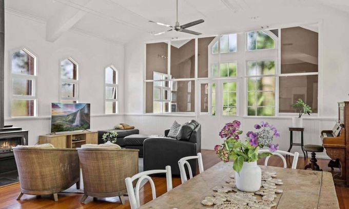 A beautiful 1960's Church converted into a spacious and peaceful country retreat. Located at the culinary crossroads of Milawa, Myrtleford and Beechworth.