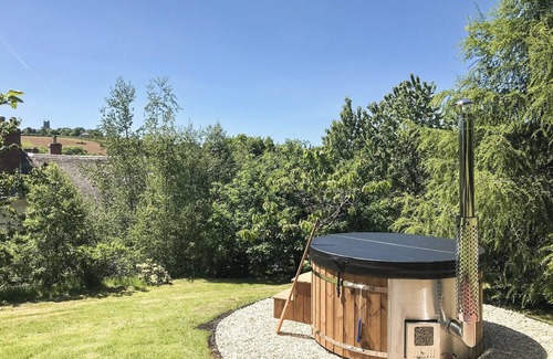 Bathroom: Bath With Shower Over, Toilet. Oil central heating, gas, electricity, bed linen, towels and Wi-Fi included. Travel cot, highchair and stairgate available on request. Welcome pack. Lawned front garden with sitting out area and BBQ. Wood fired hot tub for 6 (private), fuel £20. Private parking for 4 cars. No smoking. This property has a natural water supply via borehole.. The Cider Barn is a luxurious and spacious three-bedroom holiday home with a hot tub, two bathrooms and a large private garden set in the heart of Devon. Originally a 17th-century farmstead, the accommodation has been refurbished to a high standard for up to six guests to enjoy, and the property feels stylish and beautiful with its unique interiors. The barn is attached to the back of the owner’s farmhouse but guests will have private access with their own front door and driveway space, enough for up to four cars.