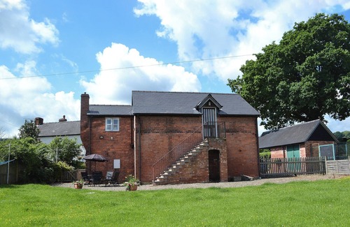 Bathroom: Bath With Shower Over, Toilet. Oil central heating, electricity, bed linen and towels included. Initial logs for wood burner included. Cot and highchair. Welcome pack. Enclosed lawned garden with patio, garden furniture and barbecue. Private parking for 2 cars. No smoking.. This nicely converted, 19th century, detached, cider mill holiday cottage is near the owner’s farm, with views over lawned gardens and meadows, in the cider apple county just south of the fine medieval town of Ludlow. It’s a short drive from woodland walks, fishing in the Teme Valley and the border country. The dining area retains a magnificent cider mill (one of the few that survive in the area) and the living room has external granary steps. Good walks from the door, and all the attractions of Shropshire and Hereford an easy drive. Shop, pub and restaurant ½ mile.