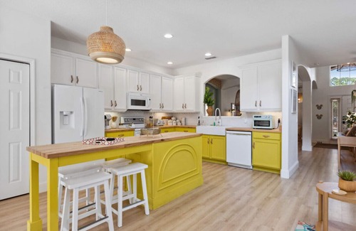 Your experience at The Citrus Villa will be enhanced by an array of stunning amenities and features tailored for entertainment and relaxation. A newly remodeled kitchen with top-of-the-line appliances sets the stage for culinary creations, while the outdoor covered lanai invites you to unwind beside the private pool and spa. Each of the five beautifully curated bedrooms comes equipped with smart TVs, ensuring every guest enjoys both comfort and convenience. Whether you're celebrating love or simply enjoying a getaway with family and friends, the elegant dining spaces and cozy outdoor areas make gatherings truly memorable.