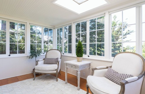 Spacious and immaculate, this light-filled 1650 square foot upper level flat offers serenity and privacy. Features include formal living and dining rooms, large chef 's kitchen and a master bedroom and sunroom filled with views, light and warmth. Master bath with spa tub, separate marble and tile shower, and walk-in closet. Second bedroom with French doors leading to a quaint sundeck. Another deck off of the kitchen and laundry room is perfect for grilling with gorgeous views. Luxury appointments, original artwork and period chandeliers help to create an elegant, yet relaxed setting. Access to a beautifully landscaped formal garden is available by arrangement. WiFi throughout.