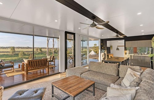 Experience living off the grid without compromising lifestyle where you will be able to relax and enjoy pristine surroundings of the Clarence River in luxury. The setting of the house is remote and serene, a quiet refuge from everything, free from distractions and run only on solar power. Amazing views and vistas in all directions.