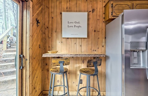The house has all the elements of an inviting mountain escape, from the wood-paneled walls to the gas fireplace encased in stone. After a day of adventure, come home to set up a board game or watch a favorite movie in the living room. Enjoy an open kitchen with modern appliances, two breakfast bars for easy dining, and a gaming system for your after-dinner entertainment. You'll also have a second TV in the bedroom and complimentary WiFi throughout the house.