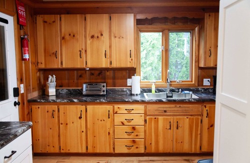 - Beautiful cabin with near shoreline with firepit, lovely deck, fireplace & W/D