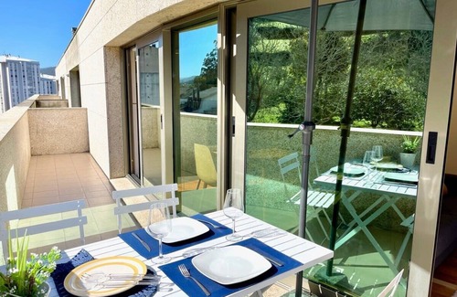 In a modern building in the center of Viveiro, between the historic center of the spectacular fishing village and the Viveiro Estuary, surrounded by its shopping, dining, pedestrian streets, promenades, historic buildings, culture, and leisure activities, this charming south-facing apartment is intimately sheltered, bathed by luminous views of the Galician greenery, nature, and forests, as if it were a peaceful retreat offering a well-deserved rest after days of exploring, beach time, or leisure.