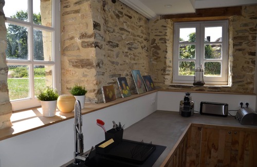 Ideally located between Caen la mer and Suisse Normande in Sainte Honorine du Fay, your cottage has just been completely renovated. It is a haven of peace in the heart of a property whose family history dates back to the 16th century. Constituted of a building annexed to the castle, the lodging, of a capacity of reception of 10/11 people has all the facilities of comfort wished: 3 parental rooms with their bathrooms or of annexed shower. 2 bedrooms each composed of 2 and 3 separate beds. A games room with billiards and table football. A living / dining room with sofas and a large fireplace, wood is provided! A new kitchen and fully equipped with oven, microwave, combined fridge / freezer, dishwasher, washer / dryer. WC in DRC and on the floor. WiFI on site. Outside: private garden on the farm side with outdoor table and barbecue. Access by crossing the Castle Park (the park is private) to the pool and its pool house (sun loungers available) and tennis court synthetic grass. The pool is usually open from May to September, depending on the weather! Ping Pong and bicycles on request, On-site parking. Our dog friends are welcome with a slight supplement.