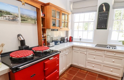 The Coach House is a stunning, detached house lying on the outskirts of Abergavenny, Monmouthshire. Hosting five bedrooms, this property can sleep nine guests, including a king-size with TV and en-suite bathroom, a king-size with en-suite shower room, a king-size with basin, a king-size and a single, along with a shower room and two cloakrooms. There is also a kitchen/diner, a utility, a dining room with electric fire, a sitting room with oil fire and a sitting room. Outside there is ample off-road parking and a large garden with lawn and furniture, and a patio with furniture. The Coach House is a wonderful family home for a relaxing break to the Brecon Beacons National Park.