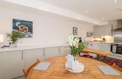 The Coach House, a single-storey house, consists of an open-plan living space with kitchen, dining area, and sitting area with electric oven, electric hob, microwave, fridge freezer, dishwasher, and air fryer. The bedrooms consist of a double and family room. There is a bathroom with bath, shower over, and basin and WC, and a ground-floor shower room with a walk-in shower, basin and WC. WiFi, fuel, power, bed linen, and towels are included in the rent. Outside, there is an enclosed rear garden with artificial lawn, furniture, and fire, and designated parking places for two cars. Two well-behaved dogs are welcome. Sorry, no smoking. Your stay at The Coach House is sure to be a memorable one.