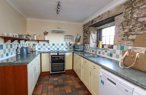 The Coach House consists of a kitchen with electric oven and hob, microwave, fridge/freezer, washing machine, dishwasher, a living/dining room with Smart TV, woodburning stove, and dining seating for six. The bedrooms consist of a king-size, a double, and a twin, serviced by a bathroom and cloakroom. Outside there is an enclosed rear garden with furniture plus communal lawn and patio with furniture, plus off-road parking in free private car park for two cars. Within 0.4 miles or less you will find a shop, a pub, and a beach, and please note this is a smoke-free property. Two well-behaved pets welcome. WiFi, fuel, power, bed linen, and towels included in the rent. Explore the coast of Pembrokeshire with a stay at The Coach House. Note: King-size bedroom has access door. Please note: This property accepts a minimum of 4 night stays.